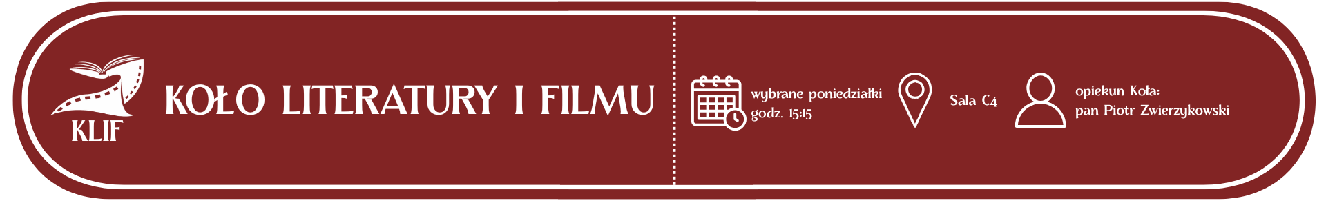 Serdecznie zapraszam na spotkania Koła Literatury i Filmu "KLIF", na których każdy z uczestników może posłuchać, bądź zabrać głos w dyskusji na temat aktualnie analizowanego dzieła literackiego lub filmowego, dzieląc się również swoimi odczuciami związanymi z danym tekstem kultury oraz delektując się przy tym herbatą, kawą i ciastkami.